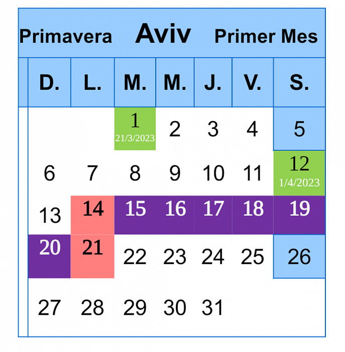 Comienzo del año (Rosh Hashaná) 1 De Aviv, 20 de Marzo. Deuteronomio 16:1;