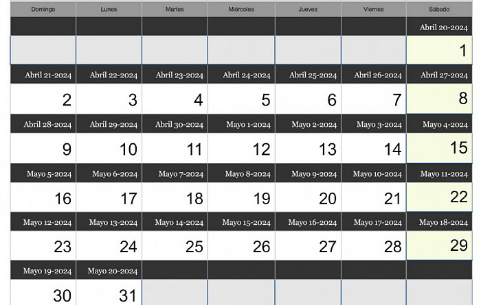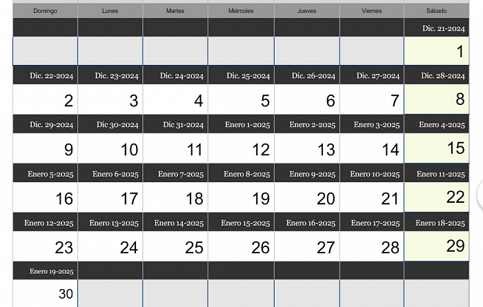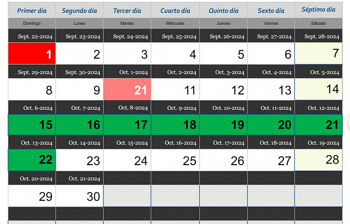 Aqui veras los Meses, y fechas marcadas del Calendario Genético Bíblico.