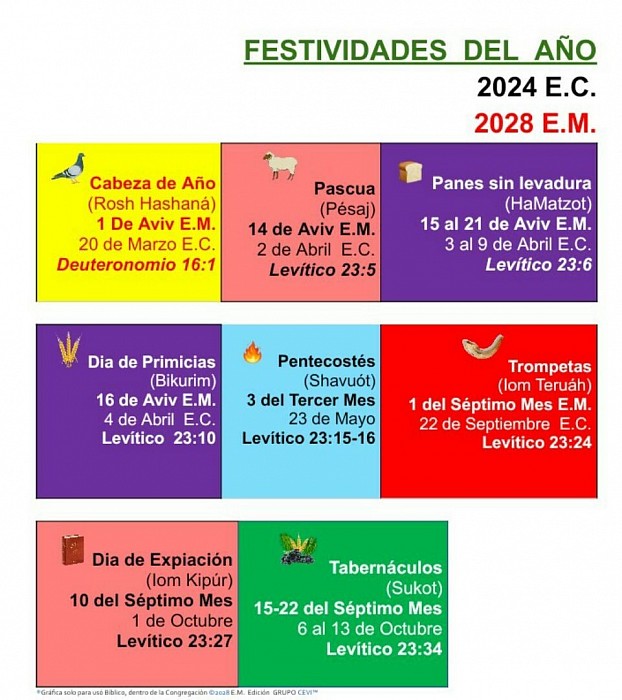 🔼 Aqui podras ver las verdaderas fiestas Bíblicas, con una ilustración visual para que conozcas el total de fechas marcadas en el Calendario.